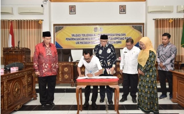 LAWATANEWS – Walikota Bima H. Muhammad Lutfi, SE (HML) mengahadiri kegiatan Validasi terjemah Al-Qur’an dalam bahasa Bima yang dirangkaikan dengan penandatanganan Memorandum of Understanding (MoU) Puslitbang Lektur Kemenag Pusat UIN Mataram.